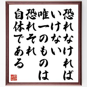 セオドア・ルーズベルトの名言「恐れなければいけない唯一のものは、恐れそれ自体である」手書き書道色紙額/受注後の毛筆直筆