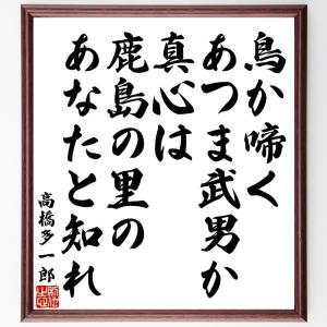 高橋多一郎の短歌・俳句「鳥か啼くあつま武男か真心は、鹿島の里のあなたと知れ」手書き書道色紙額/受注後の毛筆直筆
