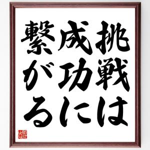 名言「挑戦は成功に繋がる」手書き書道色紙額/受注後の毛筆直筆