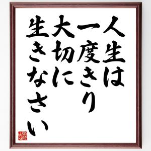 名言「人生は一度きり、大切に生きなさい」手書き書道色紙額/受注後の毛筆直筆