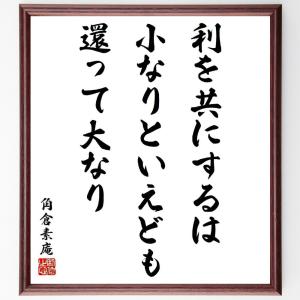 角倉素庵の名言「利を共にするは、小なりといえども、還って大なり」手書き書道色紙額/受注後の毛筆直筆