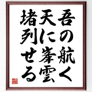 名言「吾の航く、天に峯雲、堵列せる」手書き書道色紙額/受注後の毛筆直筆