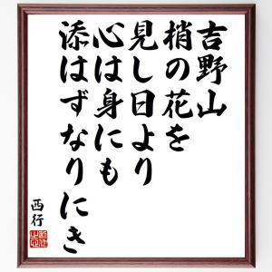 西行の名言「吉野山、梢の花を、見し日より、心は身にも、添はずなりにき」手書き書道色紙額/受注後の毛筆直筆