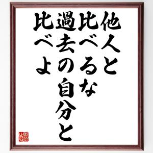 名言「他人と比べるな、過去の自分と比べよ」手書き書道色紙額/受注後の毛筆直筆