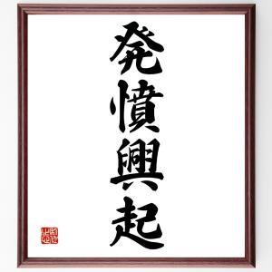 四字熟語「発憤興起」手書き書道色紙額/受注後の毛筆直筆