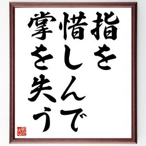 名言「指を惜しんで掌を失う」手書き書道色紙額/受注後の毛筆直筆