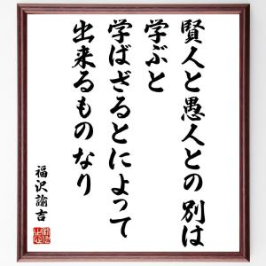 福沢諭吉の名言「賢人と愚人との別は、学ぶと学ばざるとによって出来るものなり」手書き書道色紙額/受注後の毛筆直筆