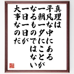 名言「真理は平凡な中にある、一朝一夕にことがなるものではない、一日一日が大事なのだ」手書き書道色紙額/受注後の毛筆直筆