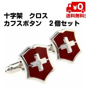 カフスボタン メンズ おしゃれ カフリンクス 盾 クロス シールド レッド 赤 十字架 2個セット 送料無料