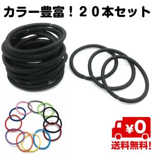 20本セット ヘアゴム 髪ゴム 3mm 無地 直径45mm シンプル リングゴム 結び目 金具なし ゴムのみ 髪留め 黒 白 赤 青 緑 黄色 紫 送料無料