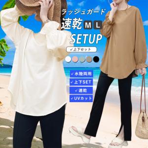 ラッシュガード 上下セット レディース 春 夏 黒 白 水陸両用 フードなし UV 長袖 速乾 紫外線対策 水遊び 海 [郵3]^su078^