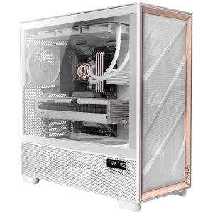 ANTEC FLUX PRO Whiteは、強化ガラスパネルと木材を使用した冷却型フルタワーPCケースです