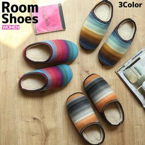 ルームシューズ レディース スリッパ 室内履き 防寒 ボア ストライプ 柄 (送料無料)[定形外150]^bm1113^