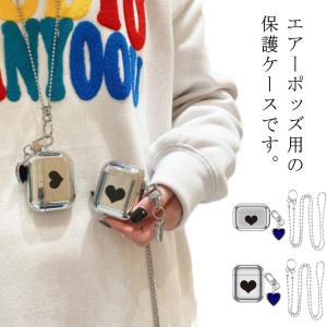 AirPods Pro ケース カバー シルバー ネックストラップ付き 送料無料 ハート メタル調 韓国 イヤホンケース おしゃれ 収納カバー メタリ