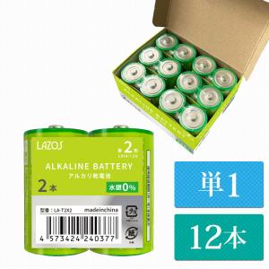 単1 アルカリ乾電池 Lazos 12本(12本入り1箱) 単一 長時間 長持ち 送料無 LA-T1x2